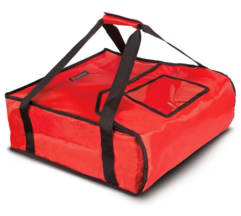 Bolsa térmica resistente para mantener 4 pizzas calientes. Tamaño compacto y práctico.