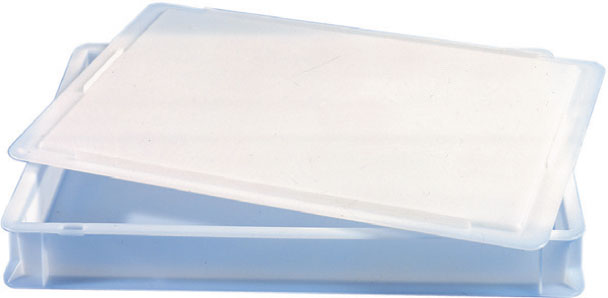 Caja plástica resistente para almacenamiento de alimentos o utensilios. Tamaño 60x40x7 cm.